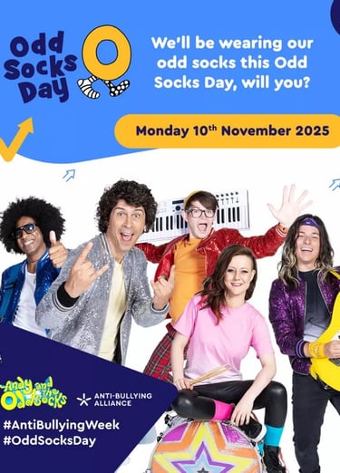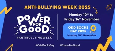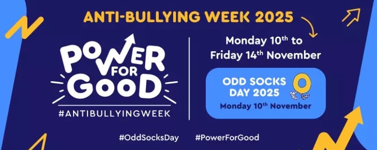 The Anti-Bullying Alliance (ABA) are the official organisers of Anti-Bullying Week and Odd Socks Day in England, Wales, and Northern Ireland. Anti-Bullying Week 2025 will run from Monday 10th to Friday 14th November, under the theme “Power for Good.” The week will begin with Odd Socks Day on Monday 10th November, encouraging both children and adults to wear odd socks to celebrate the uniqueness of everyone.