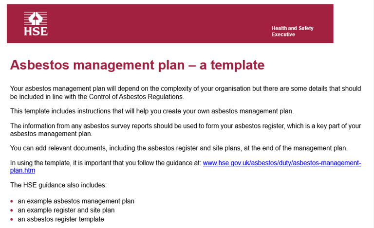 New HSE Asbestos Resources: Asbestos Management Plan Template and Asbestos Register template